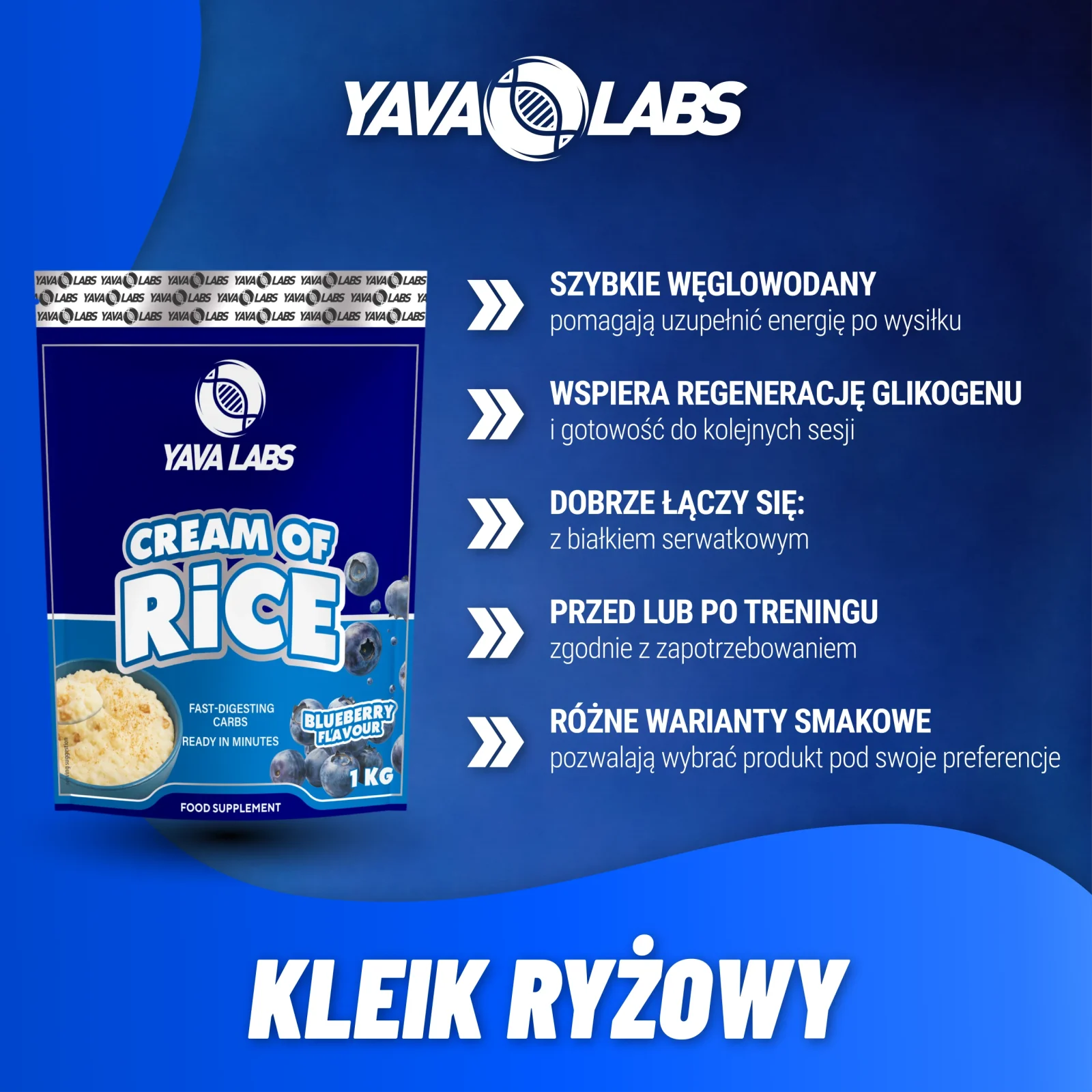 Cream of Rice Yava Labs o smaku malinowym, 1 kgCream Of Rice 1kg kleik ryżowy dla sportowców o smaku malinowym węglowodany dla aktywnych