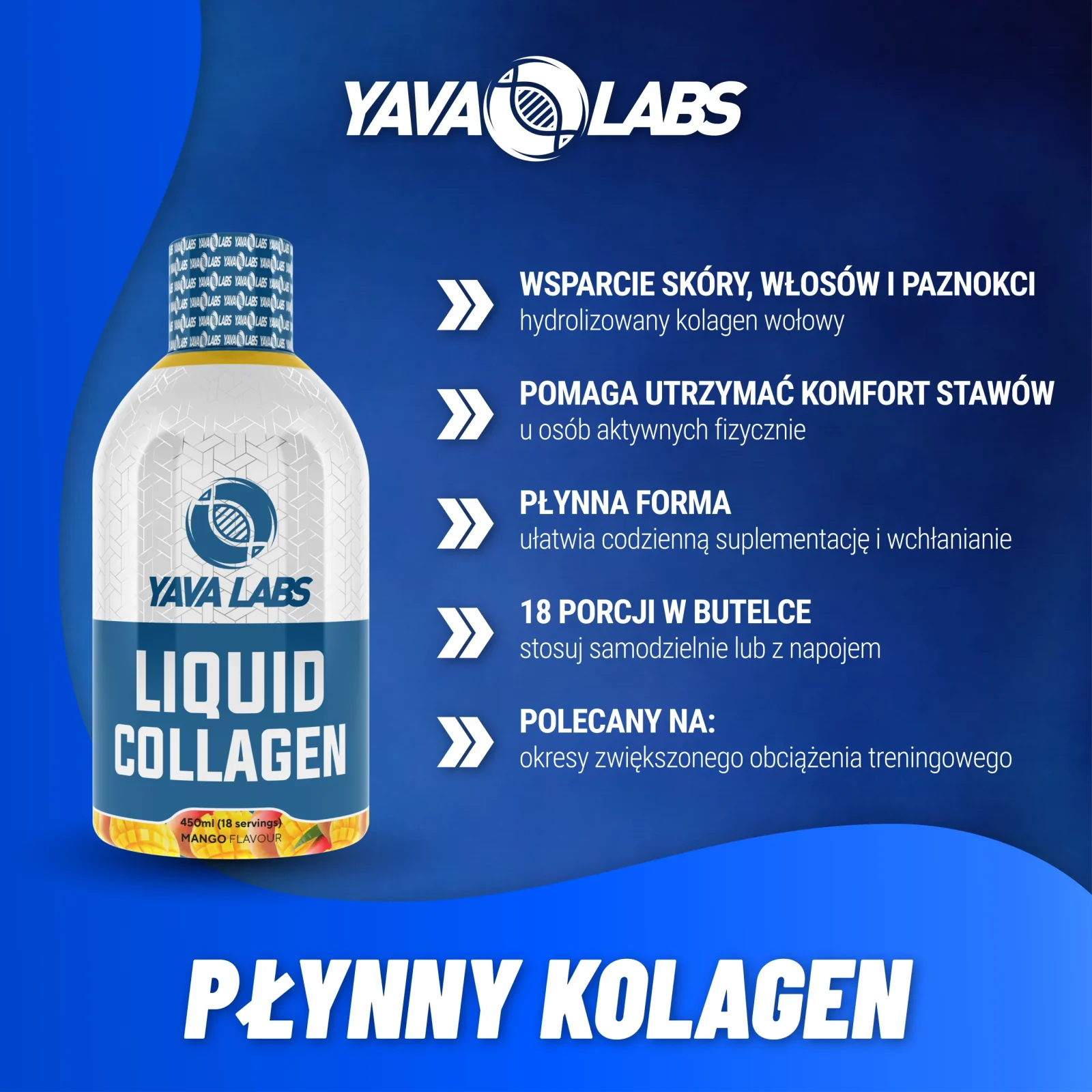 Yava Labs Liquid collagen kolagen 450 ml (18 porcji) to innowacyjny suplement diety, stworzony z myślą o wspieraniu zdrowia skóry, włosów, paznokci i stawów. Nasza potężna mieszanka kolagenu, dostępna w formie płynnej, działa od wewnątrz, dostarczając kompleksowego wsparcia dla Twojego piękna i ogólnego samopoczucia. Dzięki zaawansowanej formule w płynie, spożycie kolagenu staje się łatwe, wygodne i efektywne.