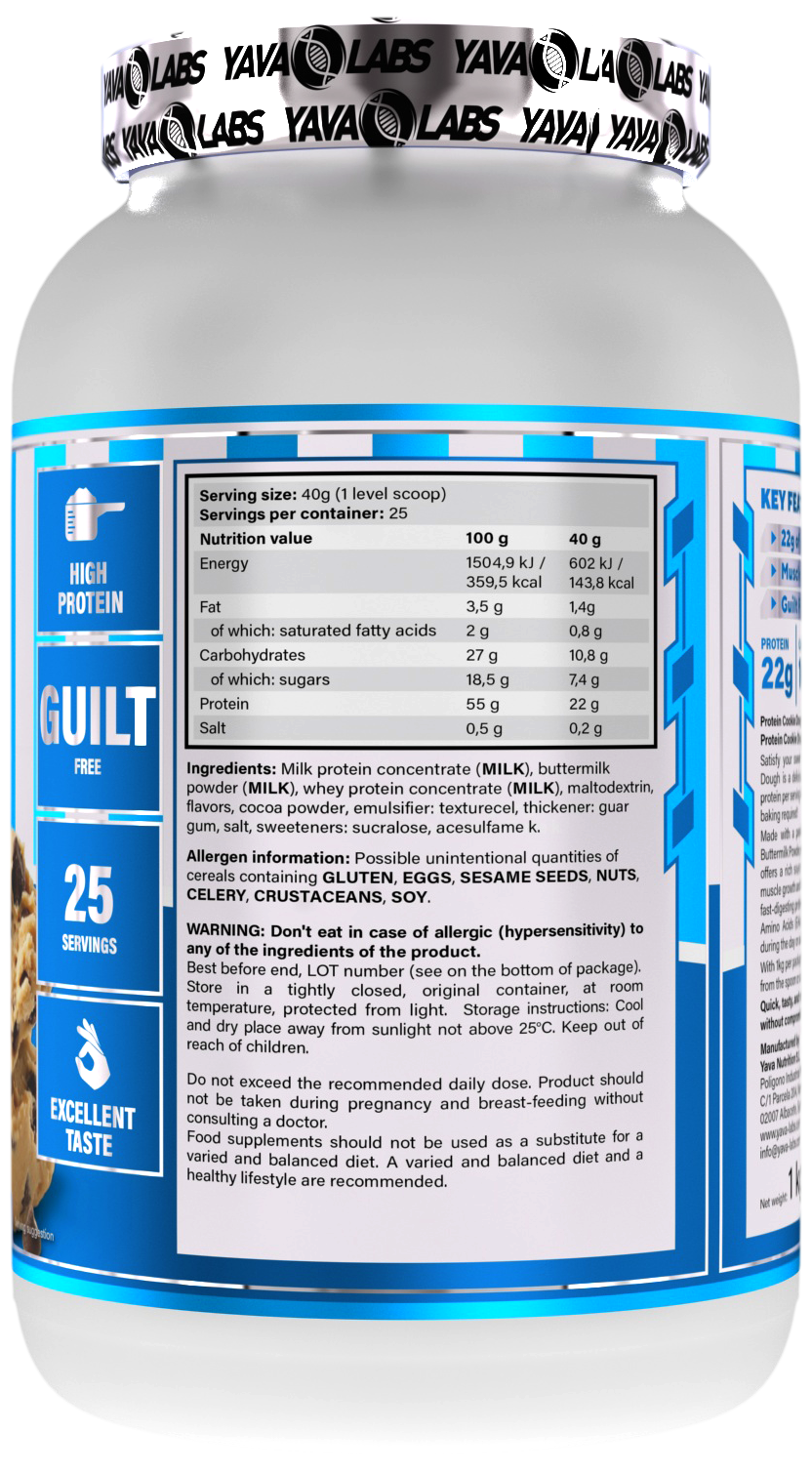 Yava Labs Protein Cookie Dough 1kg – Czekolada & Kokos to innowacyjny sposób na dostarczenie wysokiej jakości białka w formie, która zachwyca smakiem i teksturą. Produkt wyróżnia się kremową konsystencją przypominającą ciasto na ciasteczka, dzięki czemu możesz cieszyć się zdrową, pełnowartościową przekąską, która jednocześnie wspiera Twoje cele treningowe.