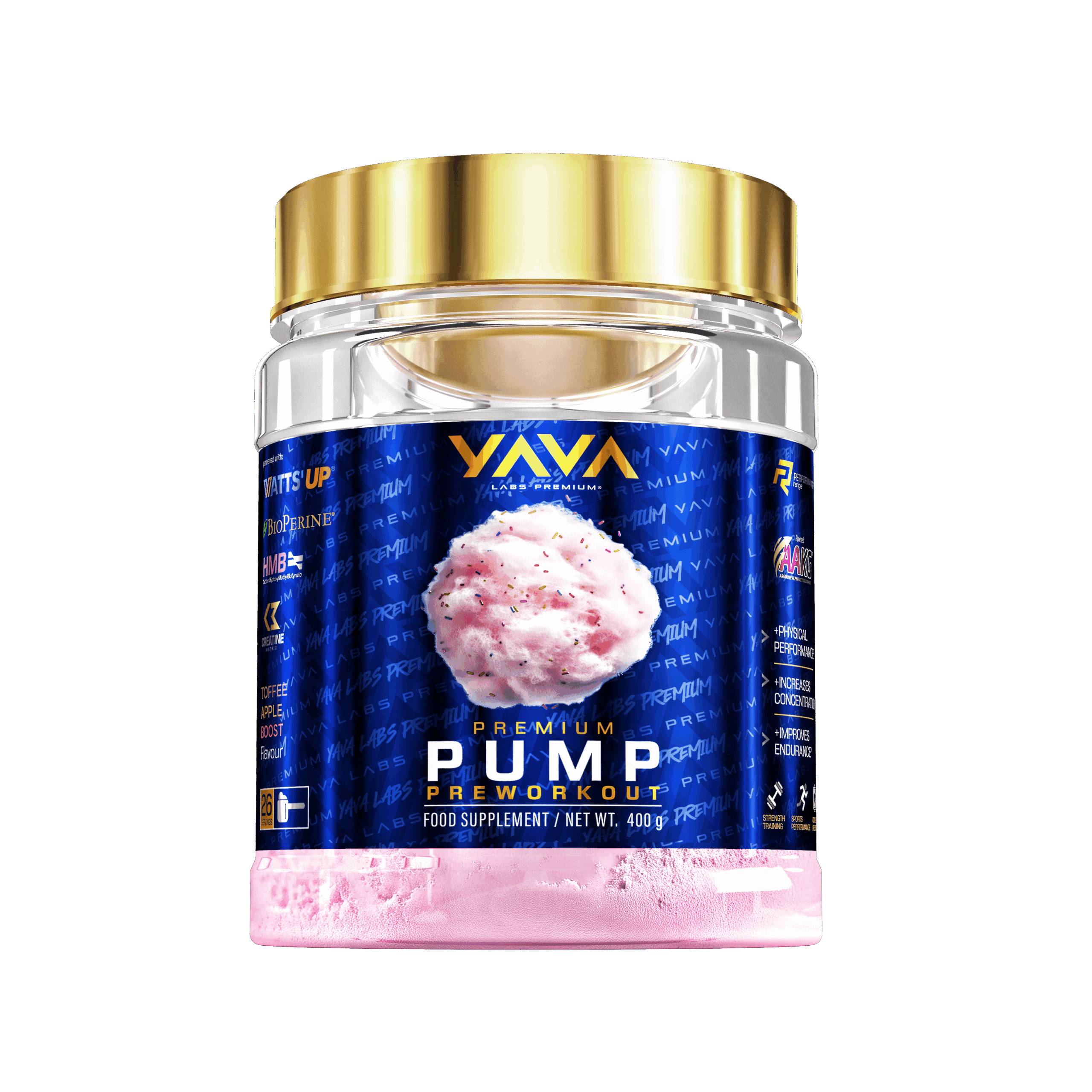 Zyskaj przewagę na treningu z Yava Labs Premium Pre Pump Pre-Workout – Wata Cukrowa. To nie tylko pre-workout, to twój sekret do mocniejszej pompy, większej energii i pełnej motywacji. Wybierz słodką energię waty cukrowej i wejdź na wyższy poziom swoich treningów!