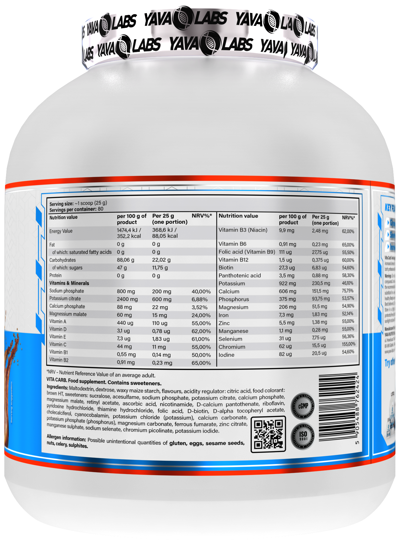 Yava Labs Vita Carb + 20 Witamin i Minerałów Węglowodany — doskonały towarzysz Twoich treningów!