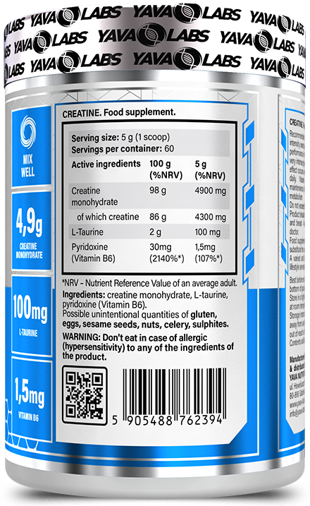 Napisz pierwszą opinię o „Yava Labs Creatine +taurine+vit.b6 kreatyna z tauryną i vit. B6 300g – kreatyna dla sportowców”
