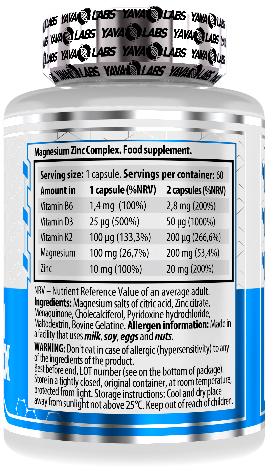 Napisz pierwszą opinię o „YAVA LABS Magnez Cynk Kompleks Witamina B6 D3 K2 60 kapsułek”