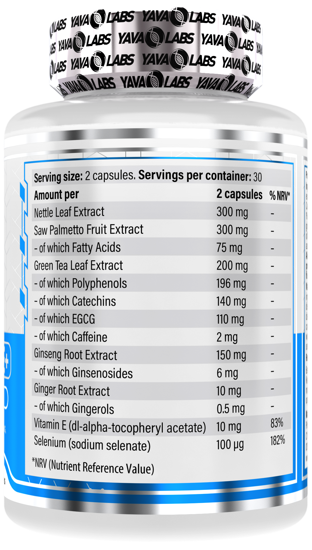 Yava Labs PROST Active+ to zaawansowany suplement dla mężczyzn wspierający zdrowie prostaty i układu moczowego. Zawiera standaryzowane ekstrakty z pokrzywy, palmy sabałowej, zielonej herbaty, żeń-szenia i imbiru, wzbogacone witaminą E oraz selenem. Naturalna ochrona, energia i wsparcie męskiej witalności w każdej kapsułce.