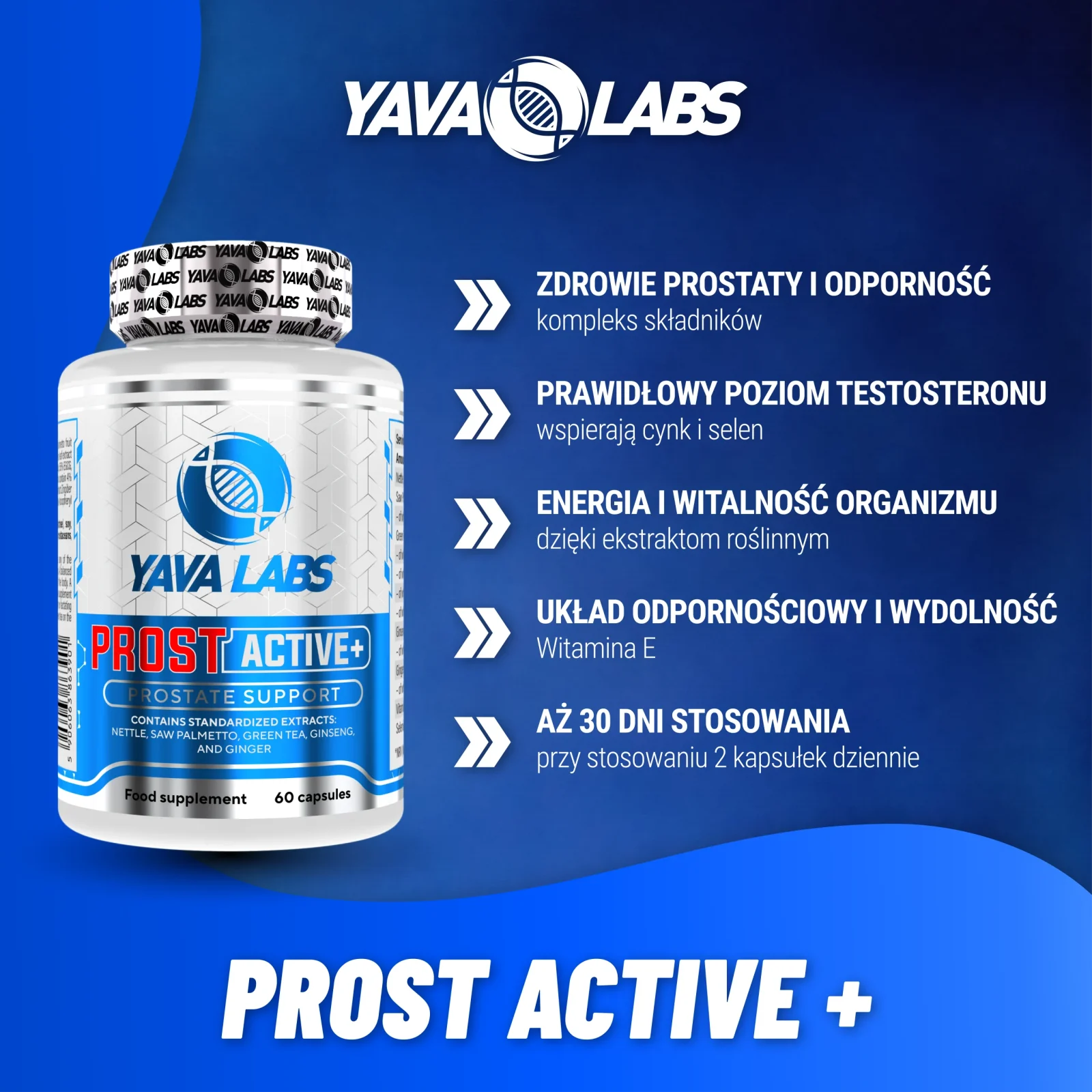 Yava Labs PROST Active+ – Suplement diety dla mężczyzn | Ochrona prostaty, energia, odporność